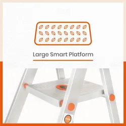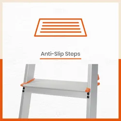 Bathla step ladder is built from rust-proof, high-grade aluminium and precision engineered HDPE components to ensure maximum corrosion resistance. Designed for use in all climates and weather conditions. Bathla's proprietary sure hinge technology features double-locking pivot joints for a perfectly stable, wobble-free experience every time. Specially designed PVC shoes give you unrivaled stability while the ladder is in use.