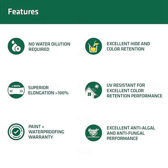 Flexible and covers hairline cracks(up to 2 mm) effectively, thus prevents ingress of water.