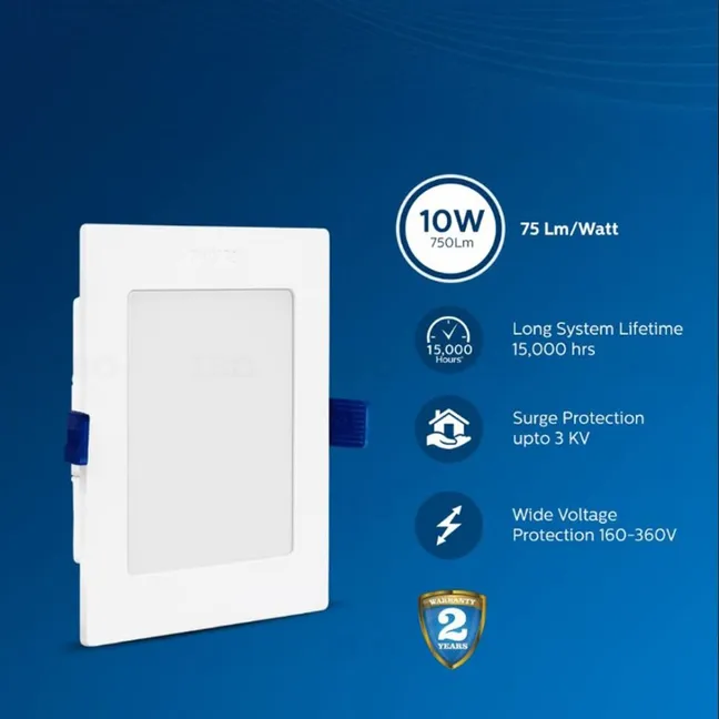 PHILIPS Astra Sleek 10-watt Square LED Downlighter | LED Ceiling Light for Home and Hall | Cut Out: 110 mm, Color: Warm White
